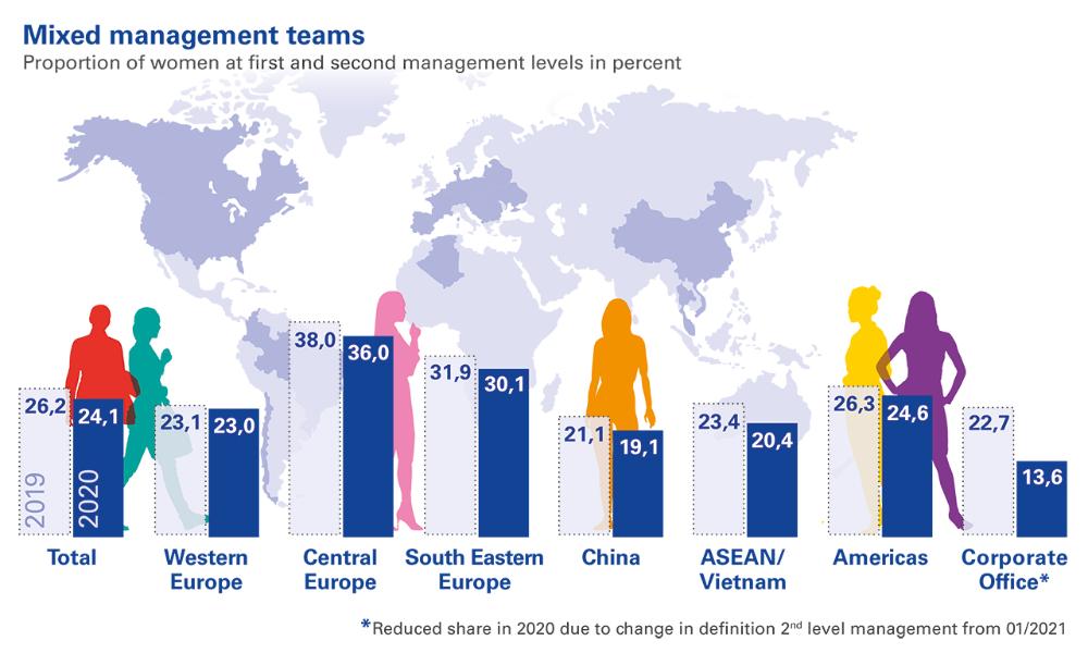 Open dialog and in-house transmission of expertise are important to us. That’s why we promote the establishment and maintenance of cross-regional and intercultural networks. In 2020, employees participated 15,559 times – in most cases virtually – in site conferences or network meetings for strategic integration or know-how transfer. By contrast, that figure was 8,369 in 2019.