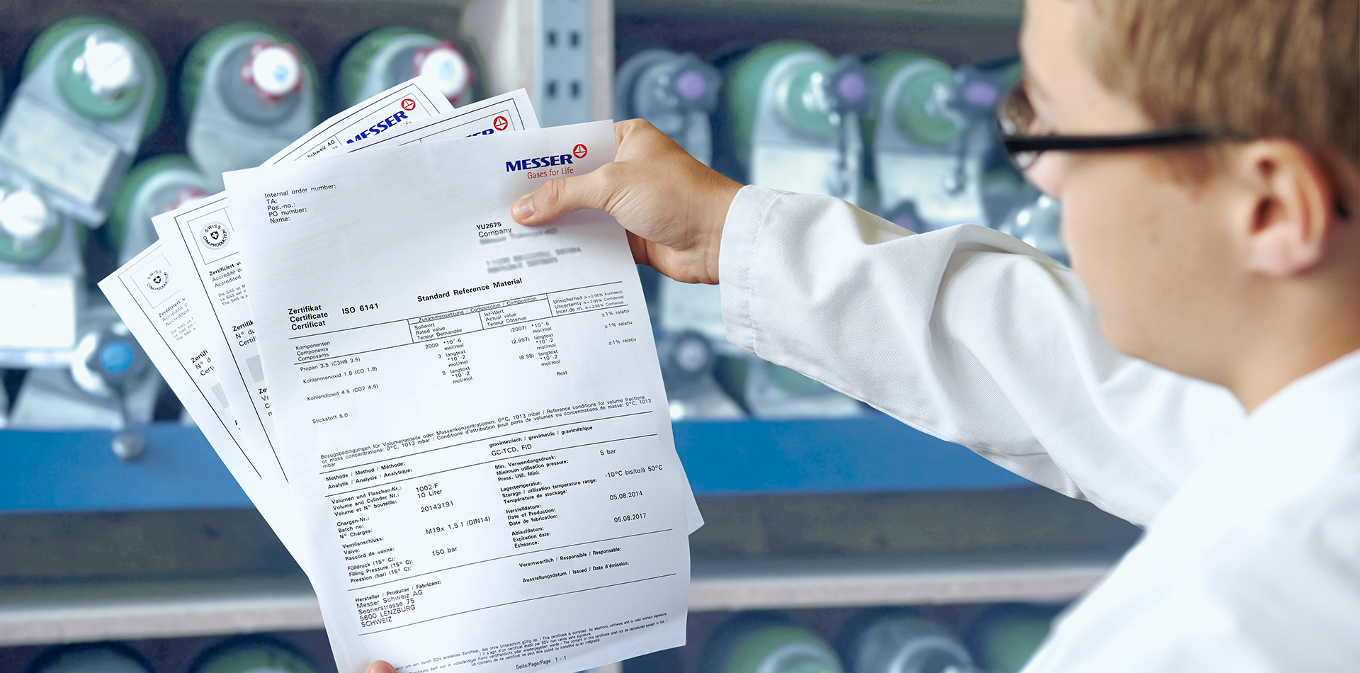 La seguridad es siempre nuestra máxima prioridad. Messer proporciona información sobre las propiedades de los gases, la manipulación segura de los gases y da instrucciones de seguridad. Los clientes que utilizan un gran número de gases de calibración, por ejemplo en un laboratorio, pueden beneficiarse de la herramienta de gestión online myLab.