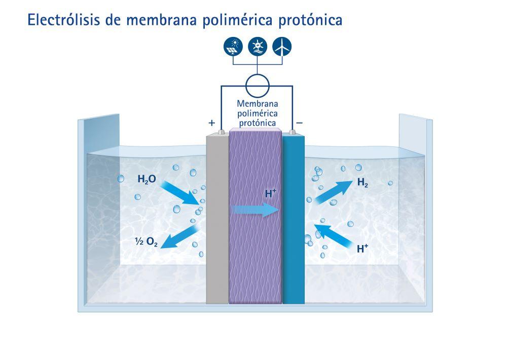 Para la producción industrial de hidrógeno, la electrólisis de agua alcalina y la electrólisis de agua con membrana de electrolito polimérico ya se han establecido. En una comparación directa, este último ofrece numerosas ventajas, por lo que Messer prefiere el proceso PEMWE.